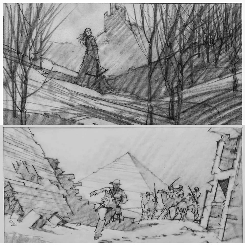 This class involves pencil or digital, rough shading and a lot of tracing paper or layers if digital. It is audit only. It stresses size, positioning, rotating and scaling elements within a rectangle… one at a time and systematically adding additional elements with adjustments just like those used for the first. Each will be positioned and/or overlapped for the best possible final scene. Lighting and values will also be important. Each week will use a different compositional motif. Typical weekly exercise images are forthcoming.
